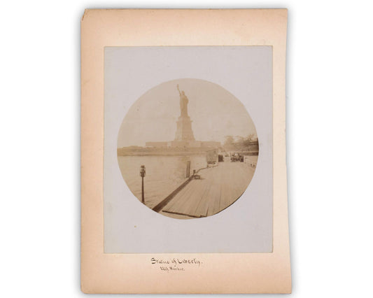Fantastic Statue of Liberty and New York City Hall Mounted Albumen Photograph