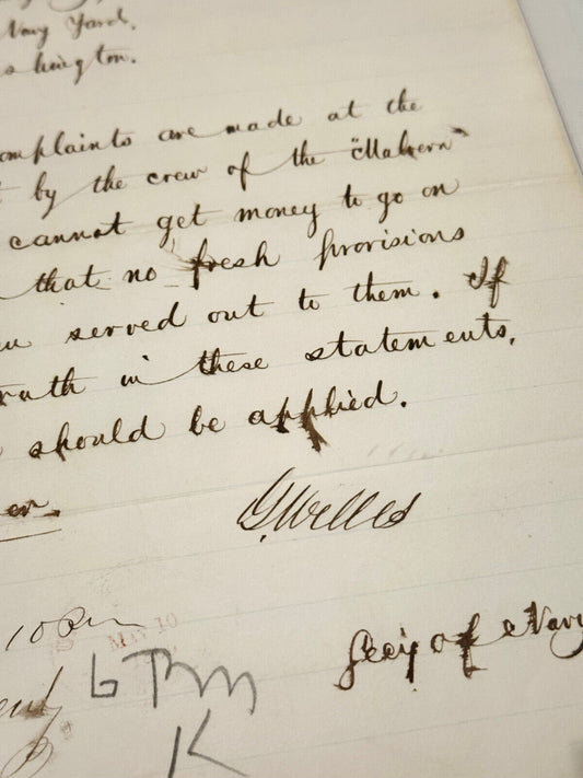 Lincoln's Sec. Navy GIDEON WELLES PSA Signed Civil War Telegram -Navy Complaints