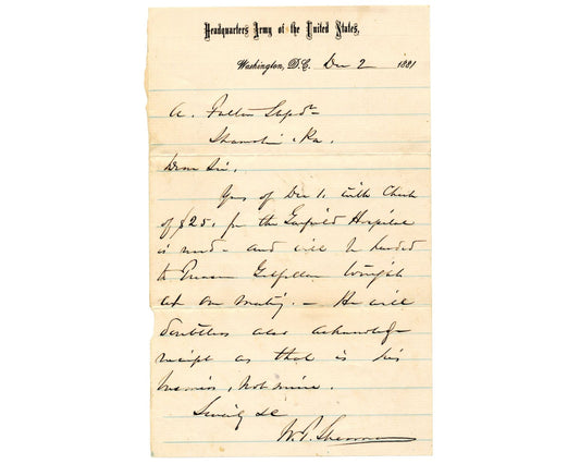 General W.T. SHERMAN Signed Letter Honors Pres. Garfield Post Assassination PSA
