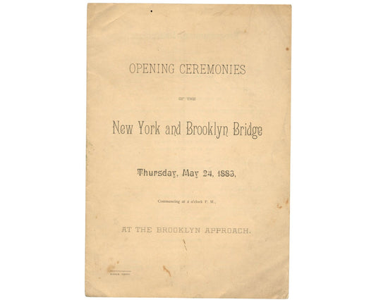 Brooklyn Bridge Opening Ceremonies Program - Rare Relic from the Opening!