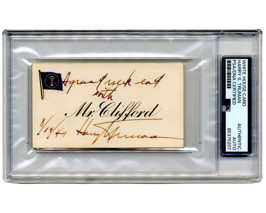 President Harry Truman Signed Presidential Yacht Card - A Rarity! PSA Auto