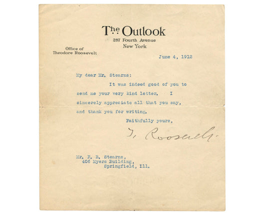 President Theodore Roosevelt Signed Letter w/ Large Signature! JSA Authentic