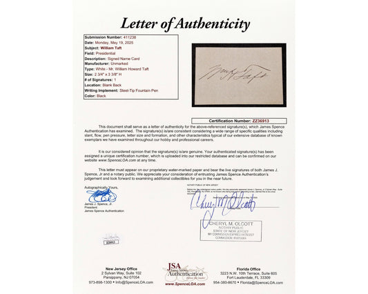 President & Supreme Court Justice William H. Taft Signed Cut - Perfect! JSA Auto