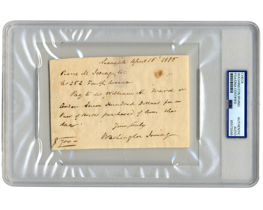 Sleepy Hollow's Washington Irving Signed Check Buying Horses! Headless? PSA